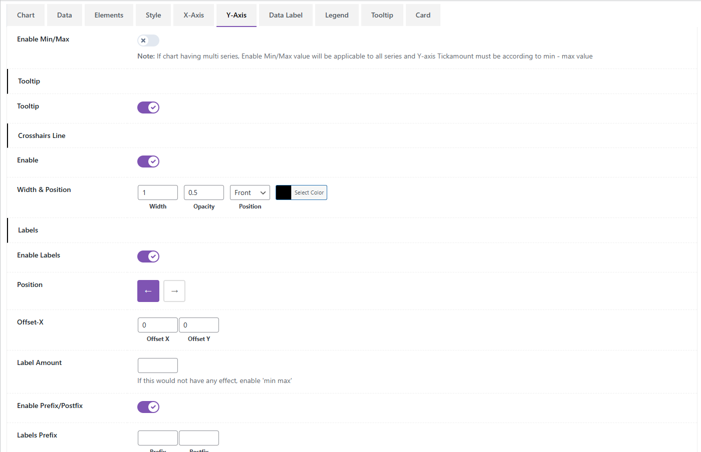 Y-Axis Settings – Control value ranges, labels, scaling, and multiple axis configurations.