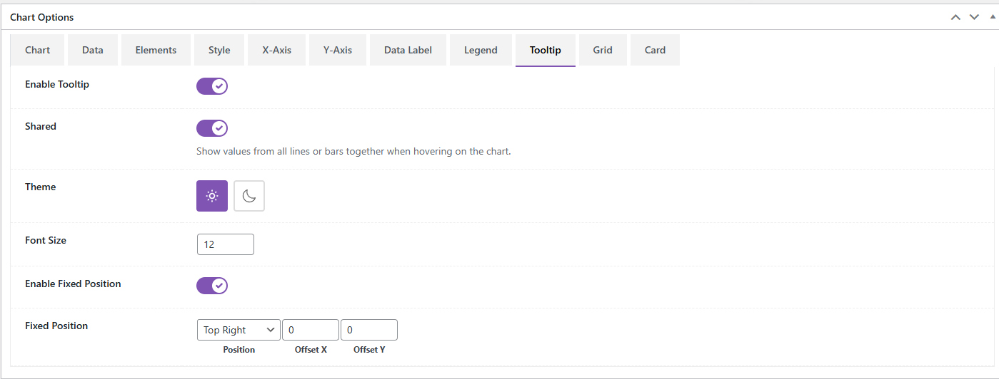 Tooltip Settings – Enable and style tooltips with position, alignment, and typography options.