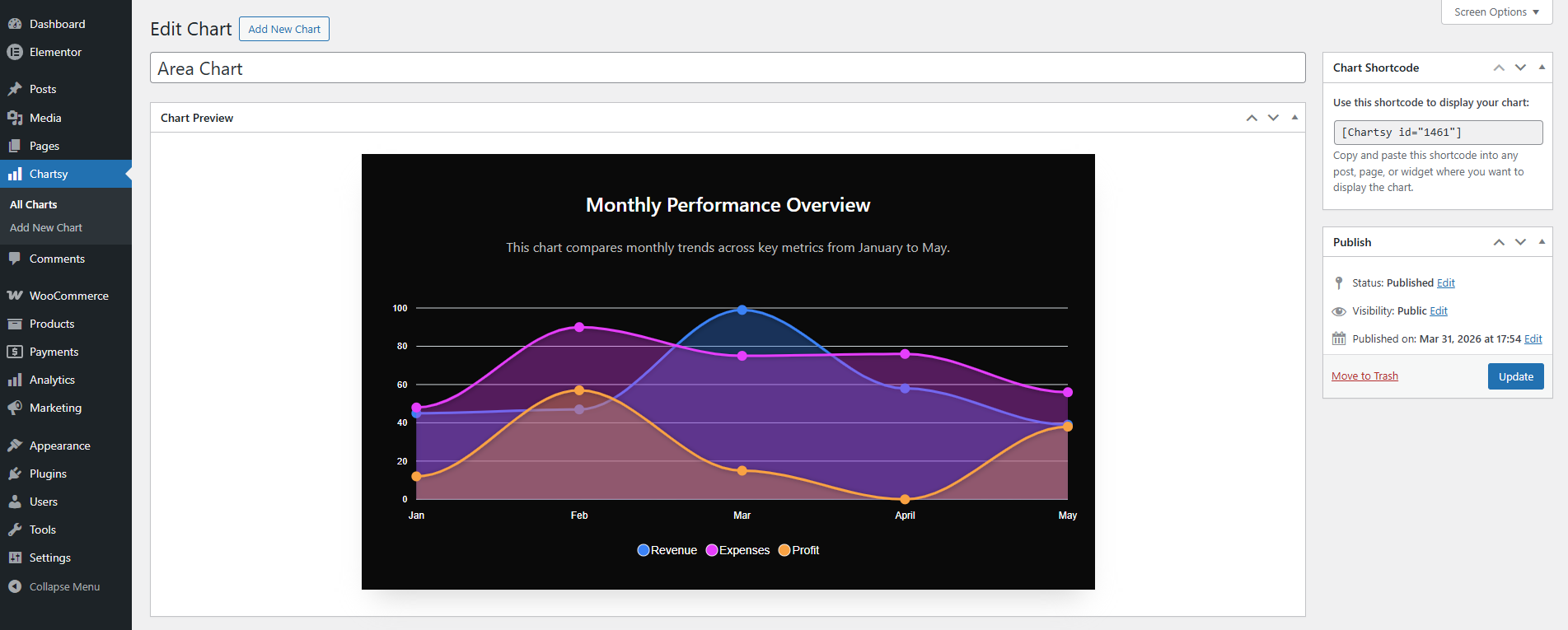 ⭐ Shortcode Support – Seamlessly embed your charts anywhere on your site using simple shortcodes: [Chartsy id="123"].